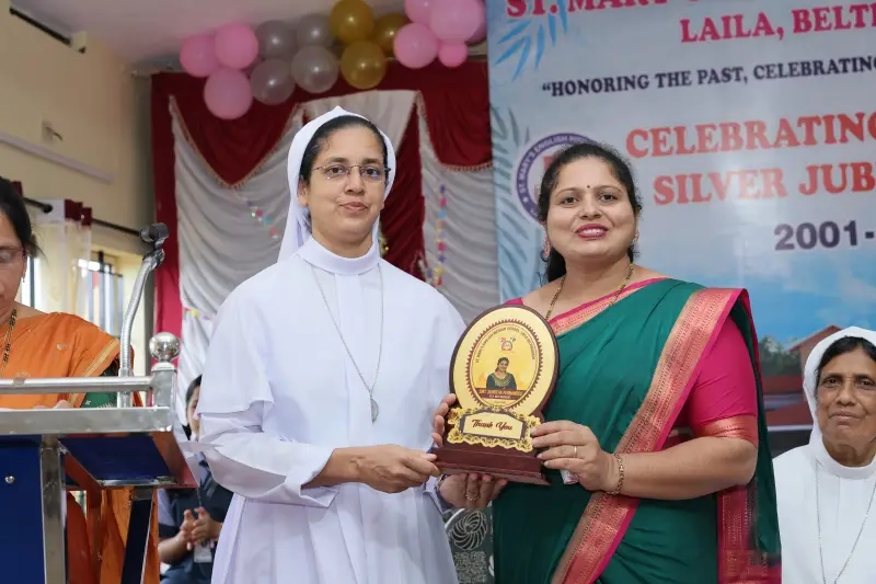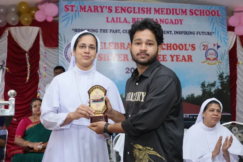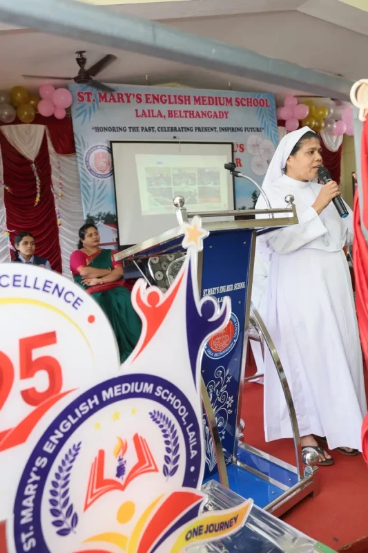 His Excellency Rt. Rev. Dr. Lawrence Mukkuzhy lit the ceremonial lamp, officially inaugurating the Silver Jubilee celebrations and launching the Silver Jubilee Logo. In his presidential address, he emphasized that “human resources are the nation’s wealth”, and expressed his confidence that St. Mary’s School, Laila, would remain the first choice for parents in the taluk. He also reflected on the school’s journey since its humble beginnings.